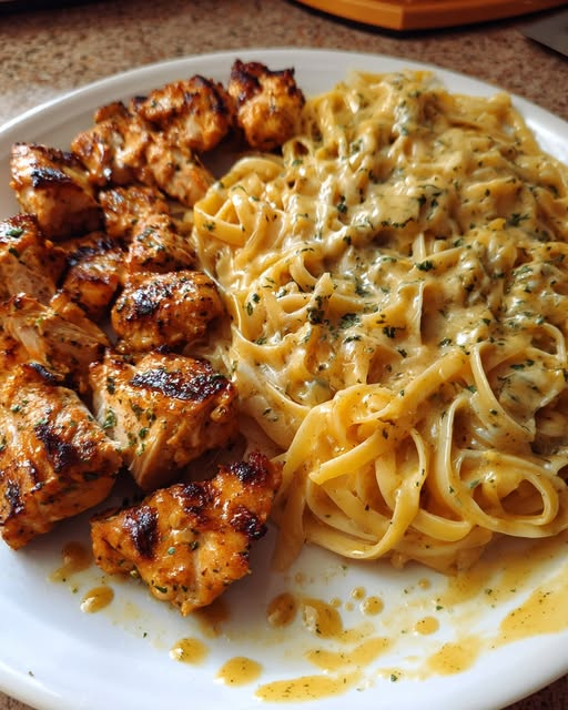 This indulgent pasta dish combines tender, seasoned chicken with perfectly cooked linguine, all coated in a rich, creamy cheddar Parmesan garlic sauce. It’s a comforting, restaurant-quality meal that’s easy to make at home. Ingredients 2 boneless, skinless chicken breasts, cut into bite-sized pieces8 oz linguine pasta2 tablespoons olive oil3 cloves garlic, minced2 tablespoons butter2 tablespoons … Read more