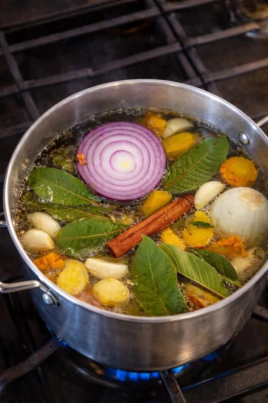 Combining everyday kitchen ingredients can result in a meal that is both tasty and beneficial for your health. This mix of garlic, turmeric, onion, ginger, cinnamon, and guava leaves draws inspiration from traditional remedies known for their anti-inflammatory, immune-supporting, and digestive advantages.