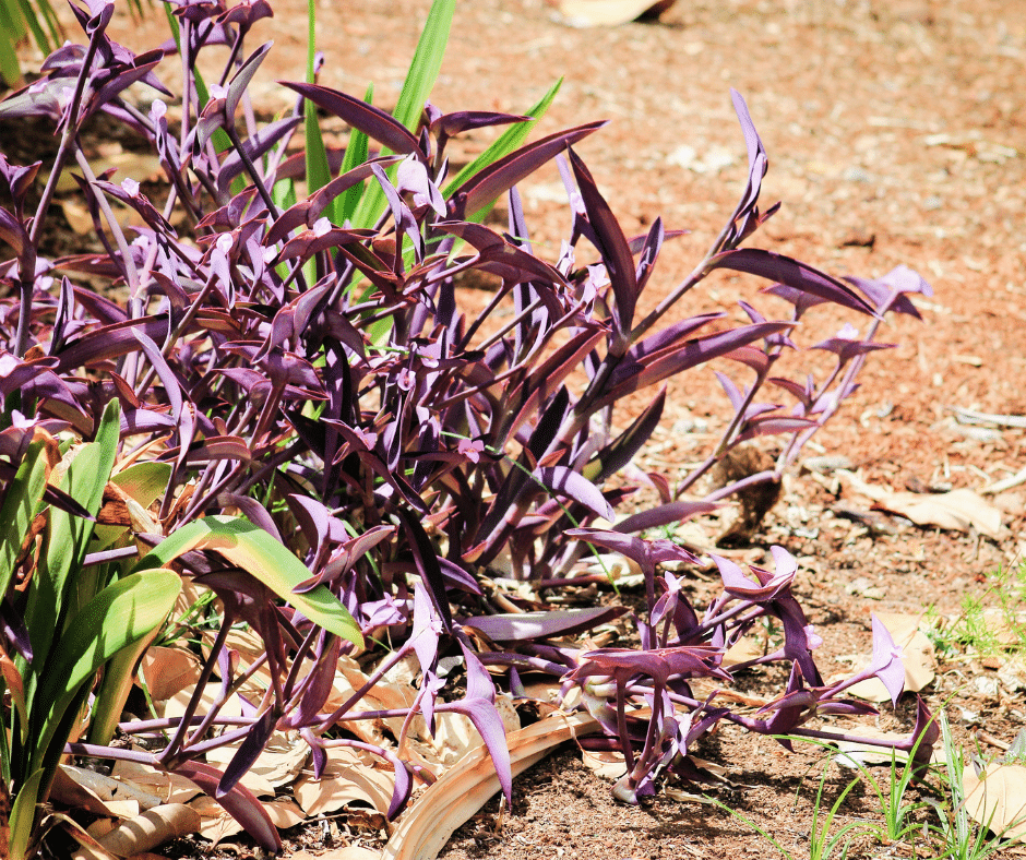 This colorful plant features purple and silver-striped leaves that shine in both shade and partial sun. It’s often grown in hanging baskets and makes an attractive ground cover in frost-free zones.