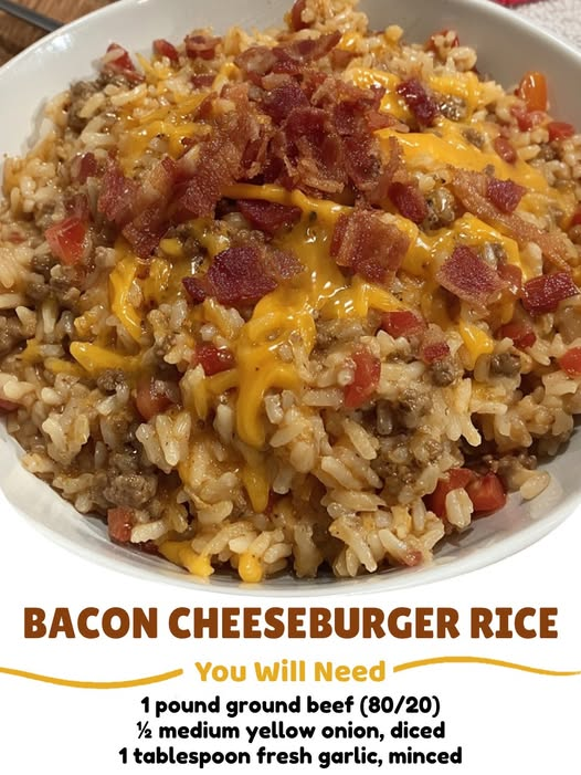 Bacon Cheeseburger Rice is the ultimate comfort food mash-up. This quick and easy one-pan dish has all the flavors of a bacon cheeseburger—savory beef, melty cheese, crispy bacon, and zesty onions—mixed with fluffy rice for a satisfying and budget-friendly meal.