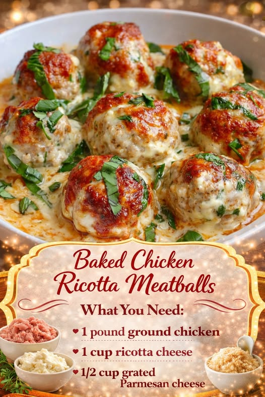 These Baked Chicken Ricotta Meatballs are tender, juicy, and packed with flavor. The addition of creamy ricotta keeps the meatballs moist while baking, and they pair perfectly with marinara sauce and fresh herbs for a comforting, crowd-pleasing dish.