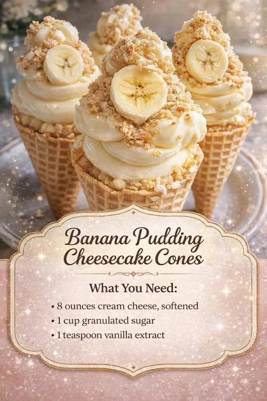 These banana pudding cheesecake cones are a fun, no-bake dessert that combines creamy cheesecake filling, classic banana pudding flavors, and crunchy waffle cones. Perfect for parties or a handheld sweet treat, they’re as beautiful as they are delicious.