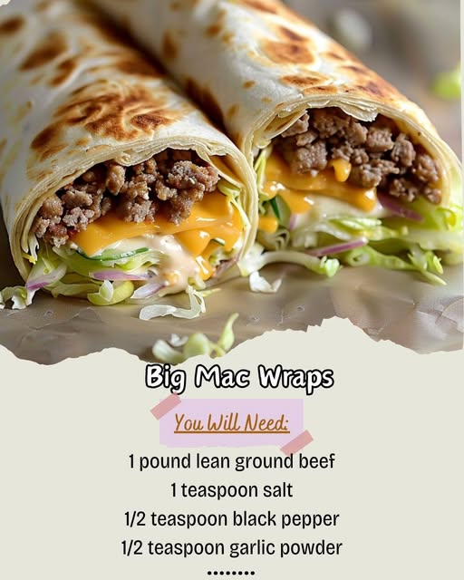 These Big Mac Wraps deliver all the iconic flavors you love in a fun, handheld version! Juicy seasoned beef, melty cheese, crisp lettuce, and that signature tangy sauce are all wrapped up for the ultimate quick lunch or dinner. Perfect for busy weeknights or game day snacking!