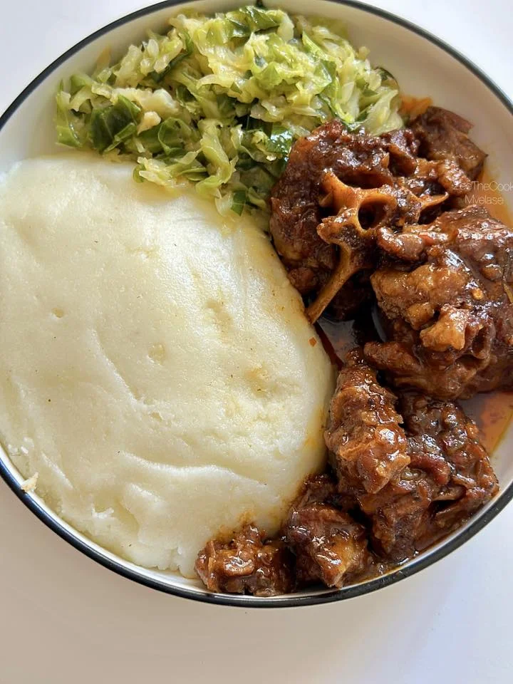 This hearty African-inspired dish features tender, flavorful braised oxtail served alongside sautéed sukuma wiki (collard greens) and a mound of soft, comforting ugali. It’s a classic and beloved combination that brings warmth and nourishment to every bite.