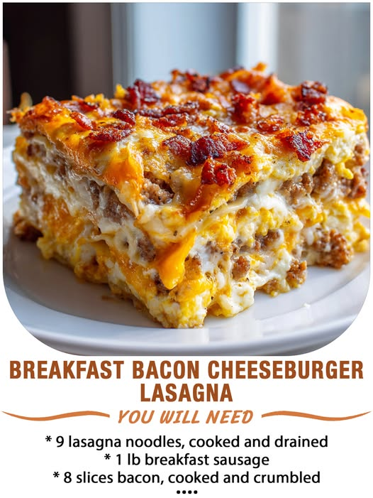 Wake up to layers of indulgent flavor with this Breakfast Bacon Cheeseburger Lasagna. This bold twist on a breakfast casserole stacks classic morning ingredients—eggs, sausage, bacon, cheese, and tender noodles—into one hearty, satisfying dish. Perfect for brunch gatherings or a breakfast-for-dinner treat!