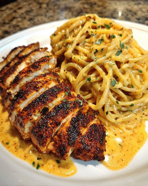 This bold and comforting dish features perfectly seasoned Cajun chicken served over creamy, cheesy spaghetti. It’s rich, slightly spicy, and incredibly satisfying—perfect for an easy dinner with restaurant-style flavor.