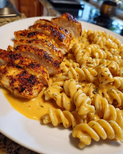 This Cajun Garlic Butter Chicken with Creamy Rotini Velveeta Cheese Sauce is a rich, comforting dish packed with bold spices and velvety smooth cheese. Juicy, seasoned chicken pairs perfectly with creamy, cheesy pasta for a satisfying meal that’s easy to make and full of flavor.