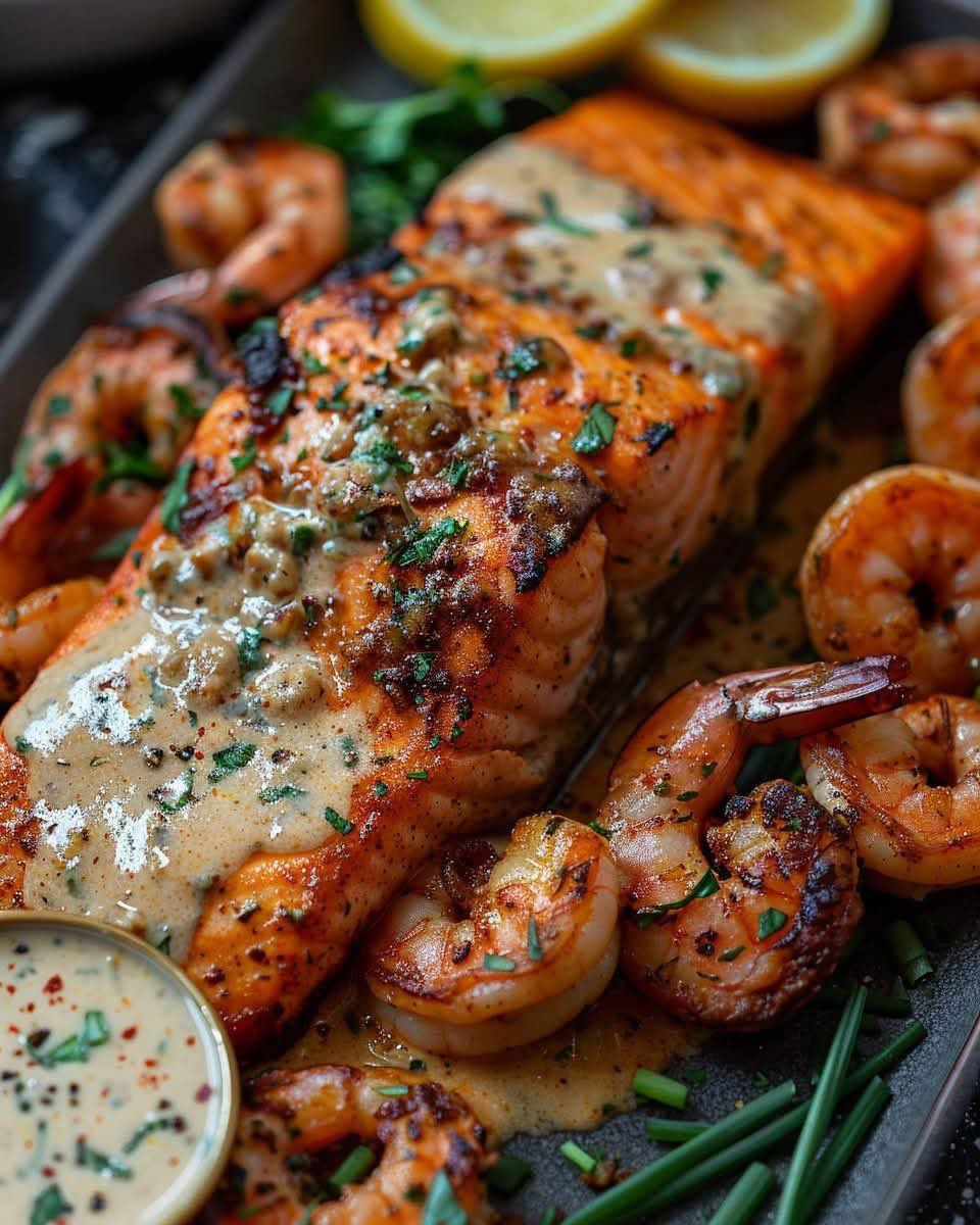 Bold, spicy, and irresistibly creamy, this Cajun Salmon & Shrimp dish is a restaurant-quality meal you can whip up right at home. The blackened seasoning brings out the richness of the seafood, while the creamy garlic herb sauce balances it all with a silky finish. It’s the perfect main course for a cozy dinner or an impressive date night.