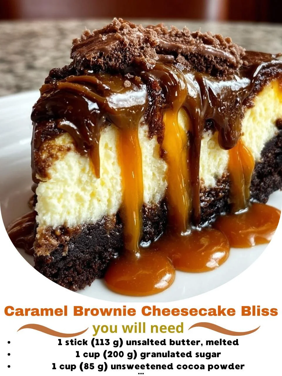Caramel Brownie Cheesecake Bliss is the ultimate indulgent dessert, combining a fudgy brownie base, creamy cheesecake center, and a generous drizzle of rich caramel sauce. Each bite delivers layers of chocolatey depth, smooth tangy cheesecake, and sweet caramel decadence—perfect for special occasions or whenever you crave a show-stopping dessert.