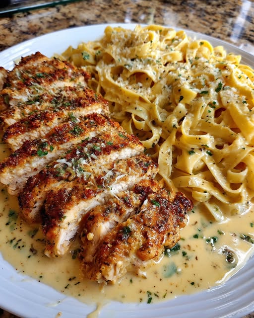 Garlic Parmesan Chicken with Linguine in Creamy Garlic Parmesan Sauce