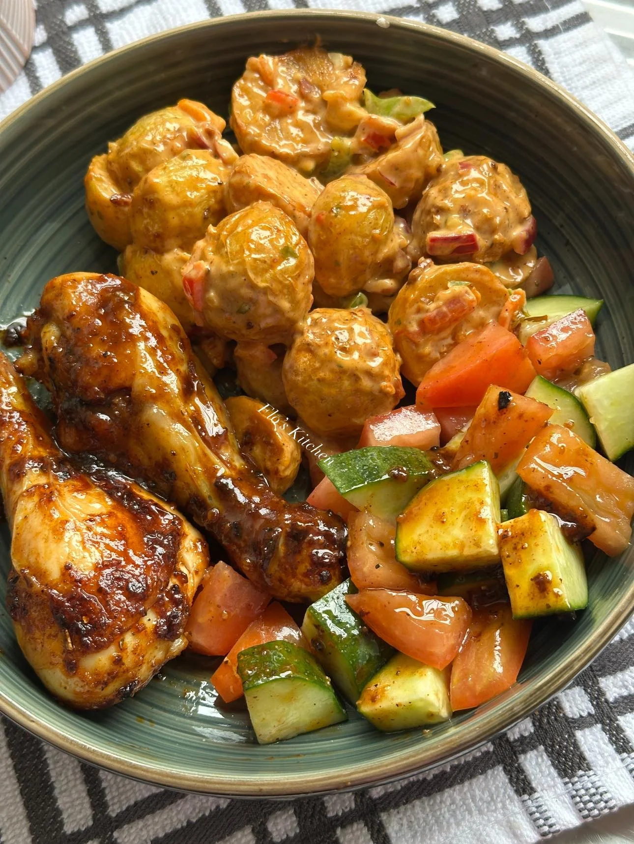 Sticky BBQ chicken drumsticks paired with crispy golden fries and a refreshing cabbage slaw make a comforting and satisfying meal. The chicken is coated in a sweet and smoky barbecue glaze, roasted or grilled until caramelized, and served alongside crunchy fries and a fresh slaw that balances the richness with bright, crisp flavors. Ingredients 8 … Read more