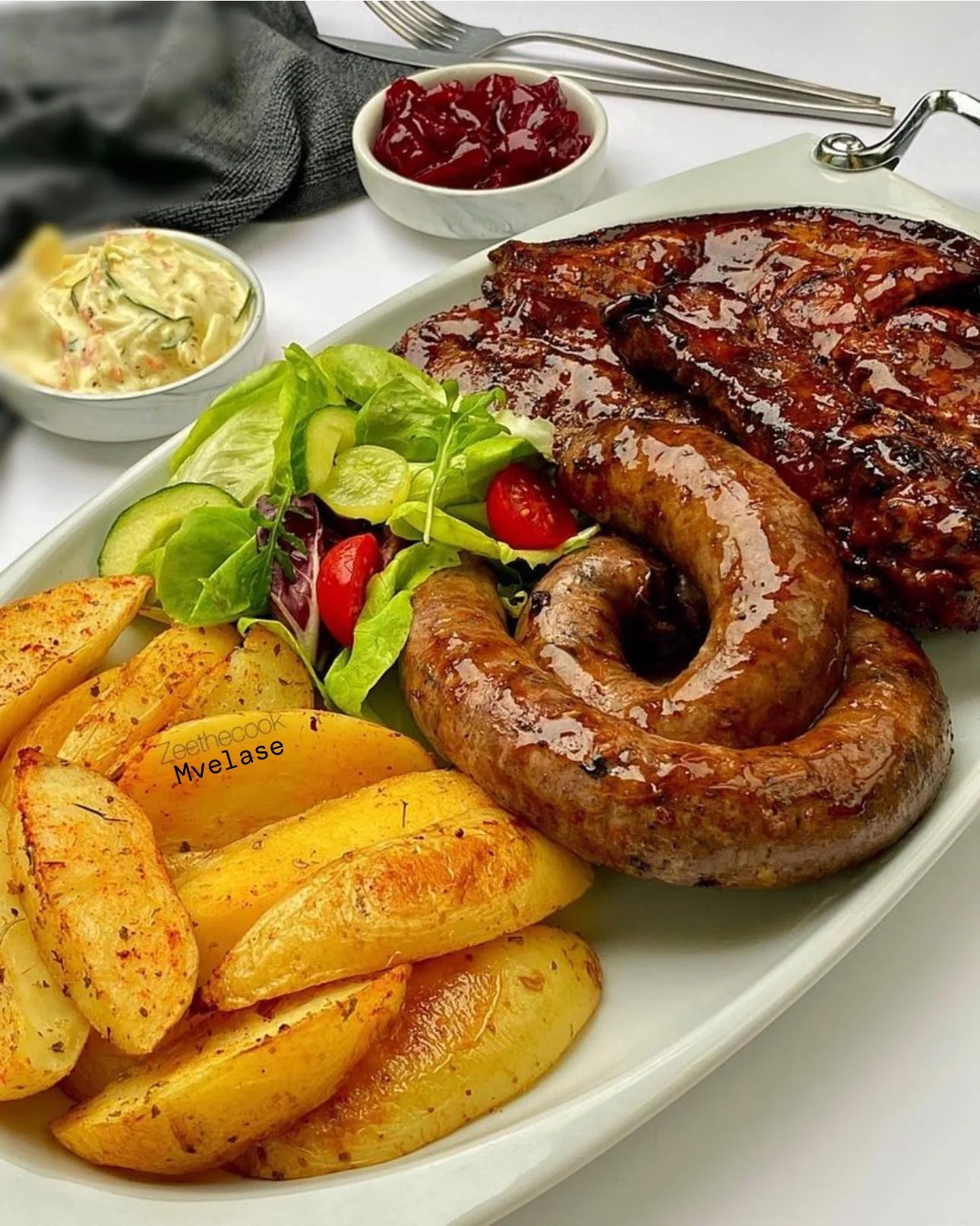 This hearty plate featuring seasoned potato wedges, juicy glazed pork chops, and flavorful wors (South African sausage) is perfect for a filling lunch or dinner. Pair it with a fresh salad and dips for a satisfying and well-rounded meal. Ingredients: For the Pork Chops:2 bone-in pork chops2 tablespoons BBQ sauce (plus more for basting)1 tablespoon … Read more