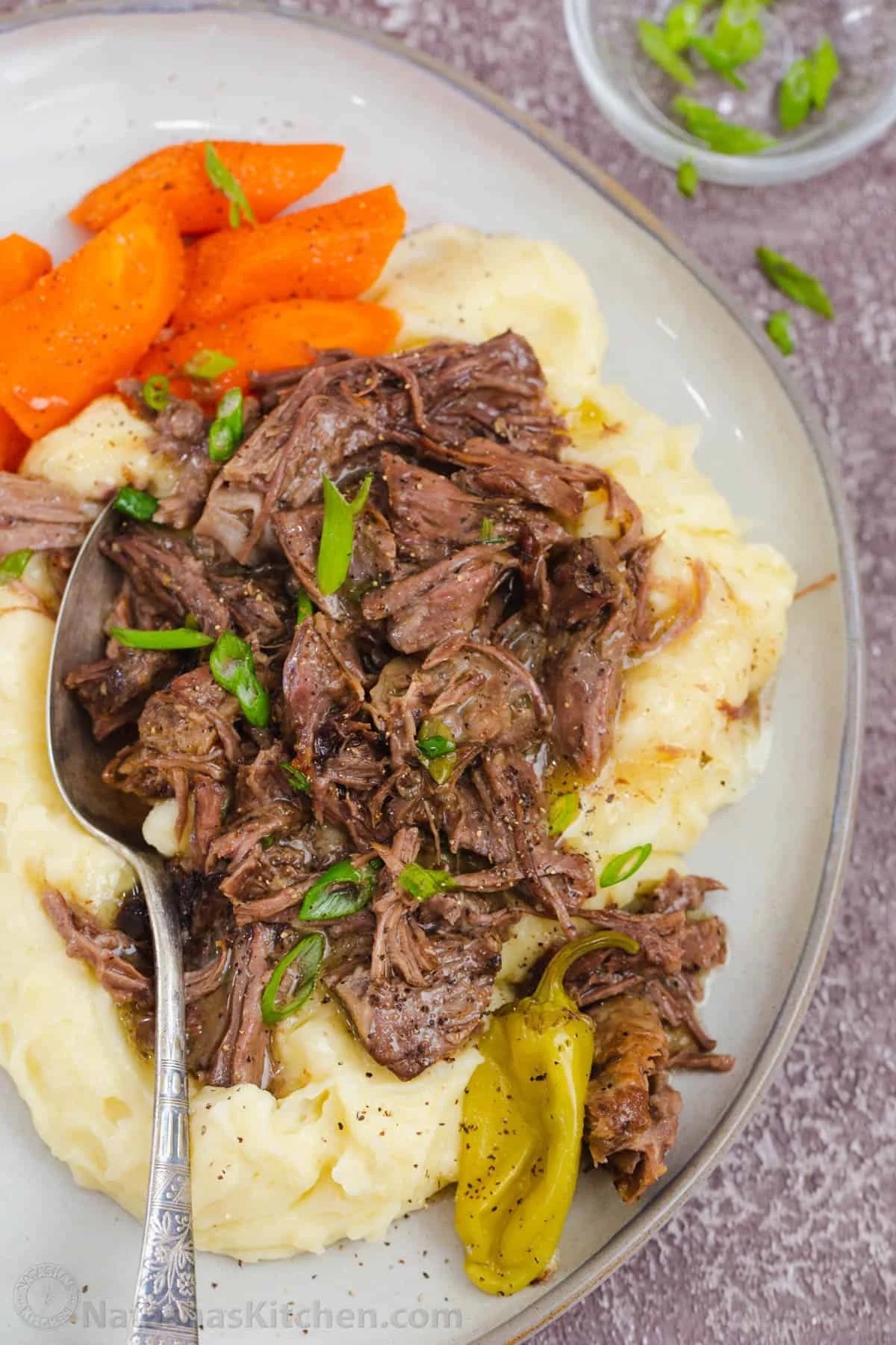 Mississippi Pot Roast Plate with Mashed Potatoes and Carrots