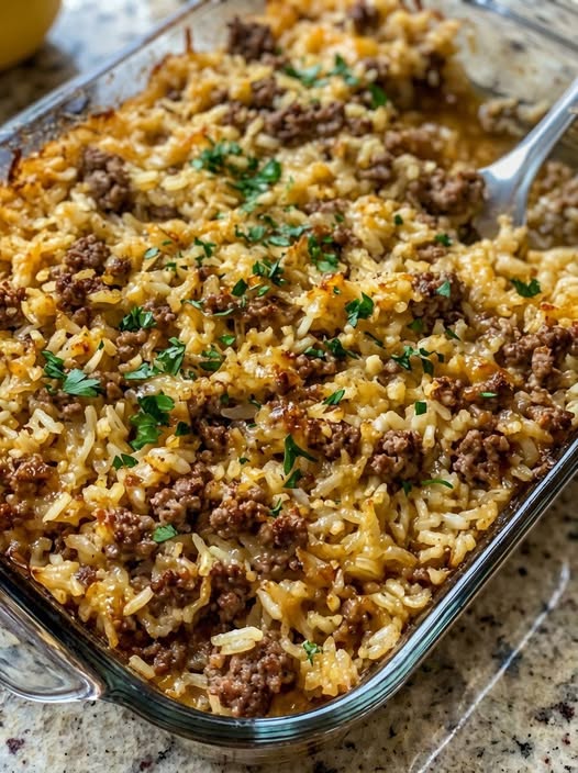 This cheesy beef and rice casserole is a comforting, one-dish meal loaded with seasoned ground beef, tender rice, and a rich, melty cheese blend. It’s hearty, flavorful, and perfect for an easy family dinner.