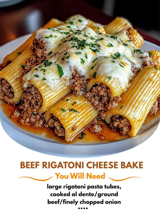 Indulge in the ultimate comfort food with this Cheesy Beef-Stuffed Rigatoni Bake! Perfectly cooked rigatoni tubes are filled with savory ground beef and onion, smothered in marinara sauce, and topped with melty mozzarella. It’s a hearty, crowd-pleasing dish ideal for family dinners or special gatherings.