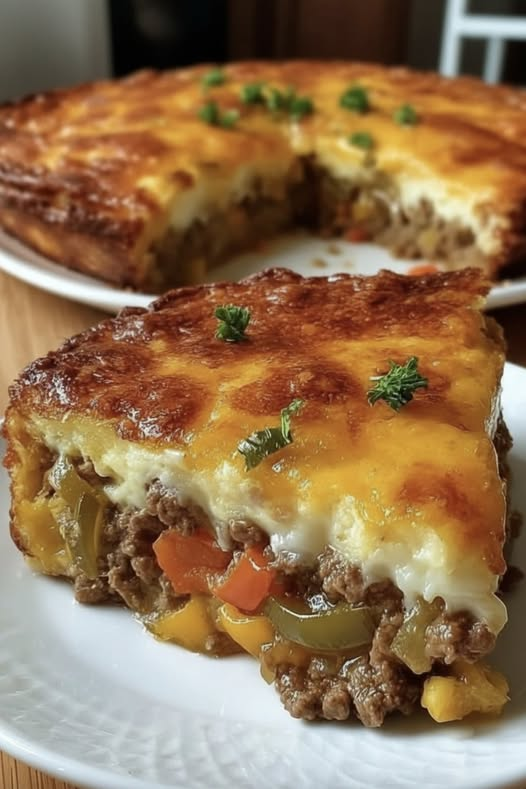 This cheesy beef vegetable pie is a hearty and comforting dish packed with seasoned ground beef, tender vegetables, and a rich, creamy cheese topping. Baked to golden perfection, it’s a satisfying meal perfect for family dinners.