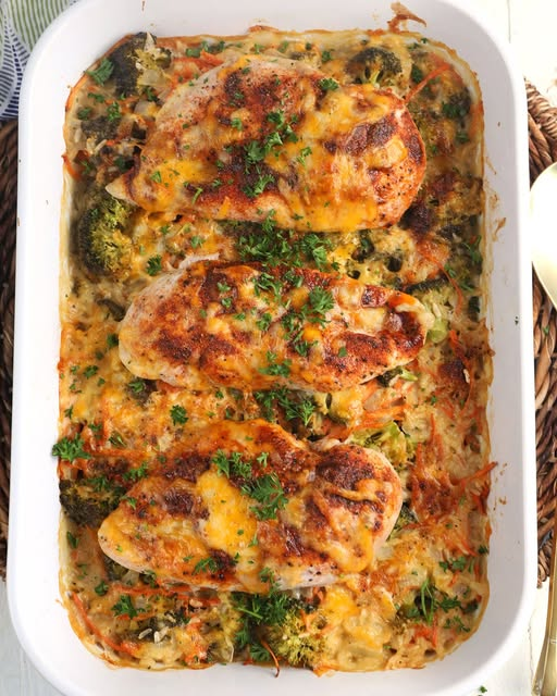 This Cheesy Chicken and Rice Casserole is the ultimate comfort food that’s hearty, creamy, and easy to make. With juicy chicken breasts, tender rice, melty cheese, and nutritious vegetables, it’s a family-friendly one-dish meal perfect for weeknights or cozy weekends.