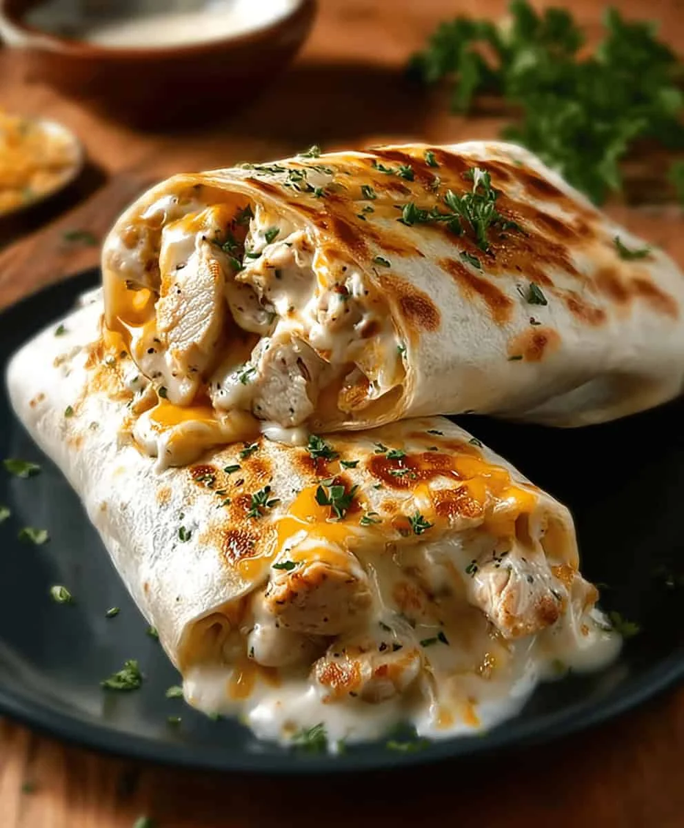 These cheesy garlic chicken wraps are creamy, flavorful, and packed with juicy chicken, making them the perfect weeknight dinner or hearty lunch. Wrapped in a warm tortilla and loaded with cheese and a savory garlic sauce, they offer a comforting bite every time.