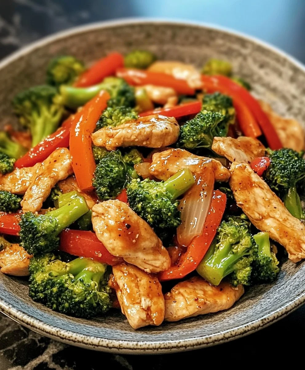 This quick and colorful chicken stir-fry is loaded with tender strips of chicken, crunchy broccoli, and sweet bell peppers, all tossed in a savory, glossy sauce. It’s a healthy and delicious meal that comes together in under 30 minutes—perfect for weeknight dinners.