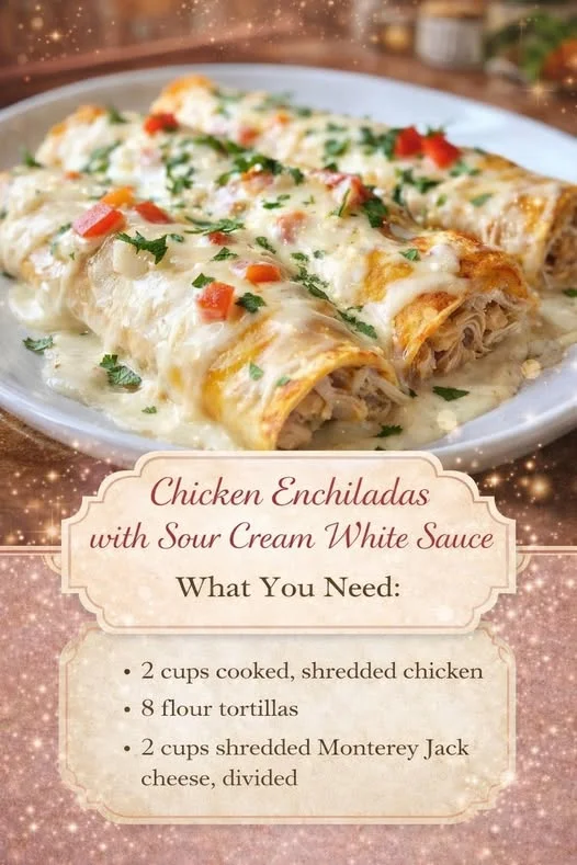 These chicken enchiladas with sour cream white sauce are creamy, cheesy, and incredibly comforting. Filled with tender shredded chicken and topped with a rich, tangy white sauce, this dish is perfect for a cozy family dinner.