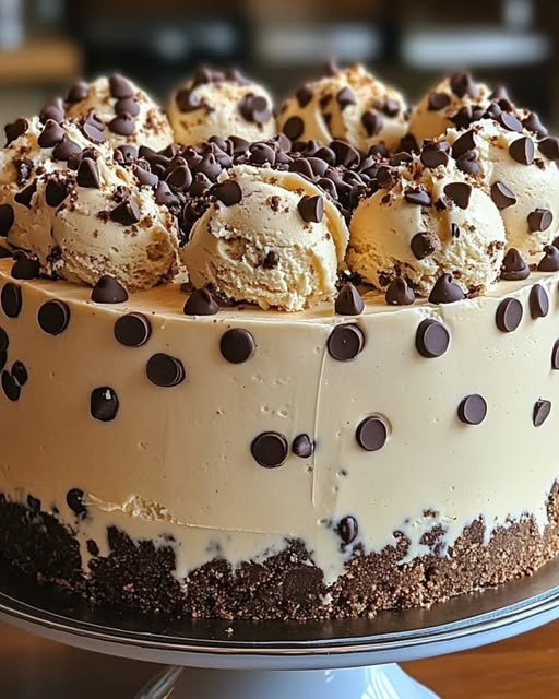 Cool, creamy, and packed with cookie dough goodness, this Chocolate Chip Cookie Dough Ice Cream Cake is the ultimate frozen dessert! With a crunchy cookie crust, layers of cookie dough ice cream, and a sprinkle of chocolate chips, it’s guaranteed to impress at any celebration.