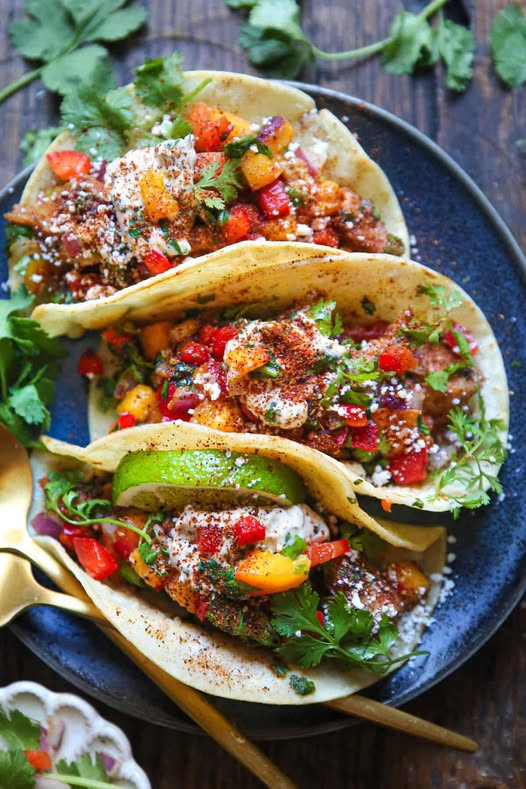 Fresh, vibrant, and full of flavor, these Cilantro-Lime Chicken Tacos with Peach Salsa and Sriracha Crema are a taco night game changer. The juicy marinated chicken is paired with a sweet and zesty salsa, then topped with a creamy, spicy drizzle. It’s the perfect balance of heat and sweet in every bite!