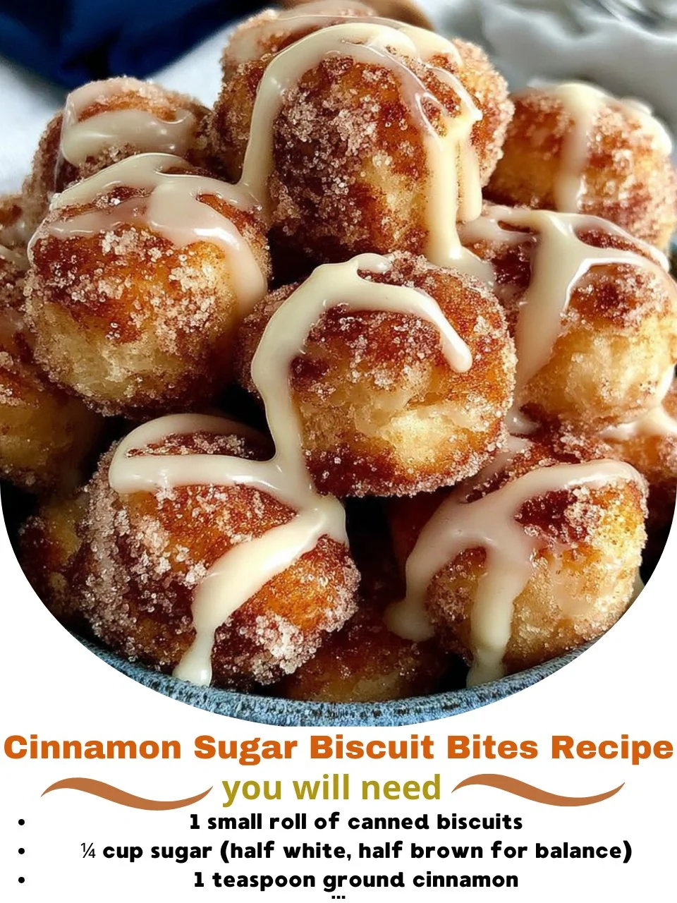 Cinnamon Sugar Biscuit Bites are quick, poppable treats that come together in minutes using canned biscuit dough. Rolled in a sweet cinnamon sugar mixture and optionally drizzled with icing, these golden bites are perfect for breakfast, dessert, or a sweet snack anytime.