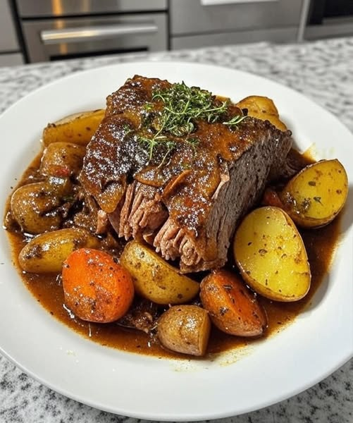This Classic Beef Pot Roast is the ultimate comfort meal—rich, hearty, and deeply satisfying. A perfectly seasoned chuck roast is slow-cooked to fork-tender perfection with baby potatoes, carrots, and a savory herb-infused gravy. It’s a warm, nostalgic dish ideal for Sunday dinner or any cozy night in.