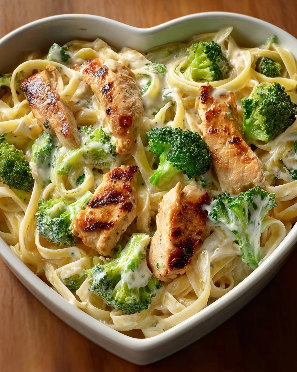 This creamy Chicken Broccoli Fettuccine Alfredo is a comforting pasta classic, combining tender grilled chicken and fresh broccoli tossed with fettuccine in a rich, homemade Alfredo sauce. Perfect for cozy dinners or special occasions.