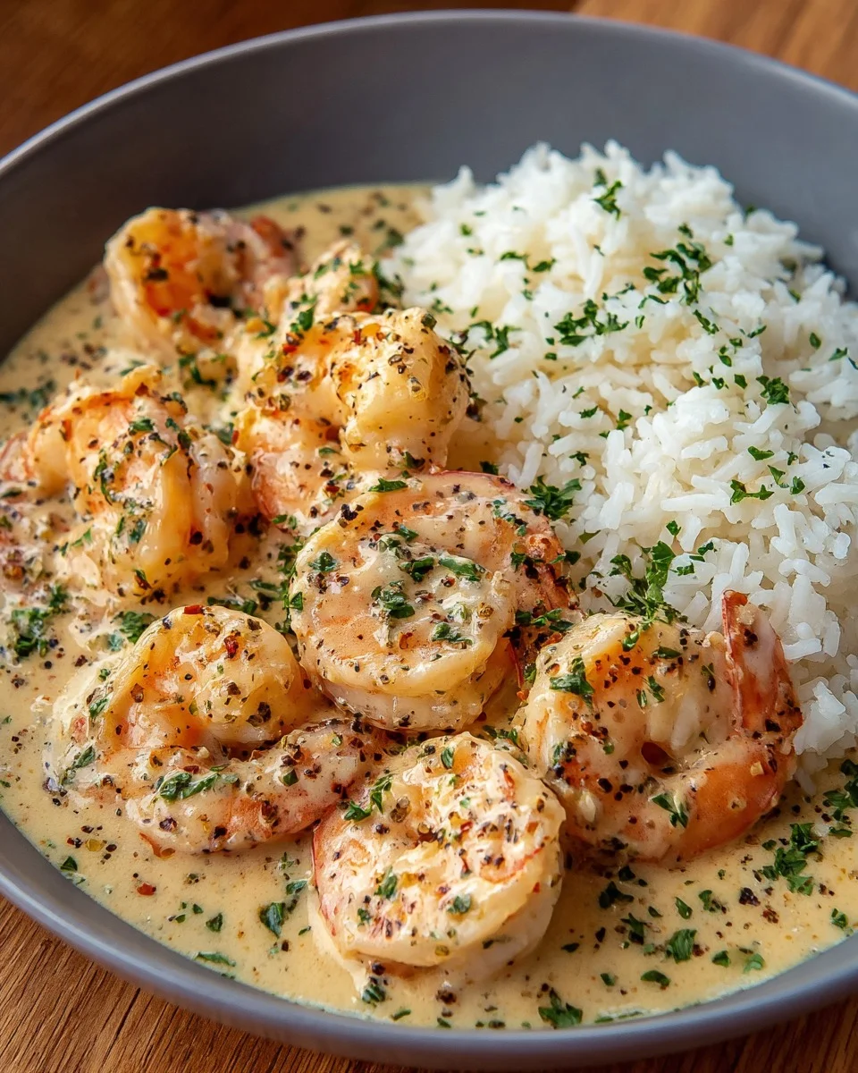 Indulge in this luxurious and comforting dish made with juicy shrimp cooked in a rich garlic butter cream sauce, served over fluffy white rice. It’s quick to make, packed with flavor, and perfect for a cozy dinner or special occasion.