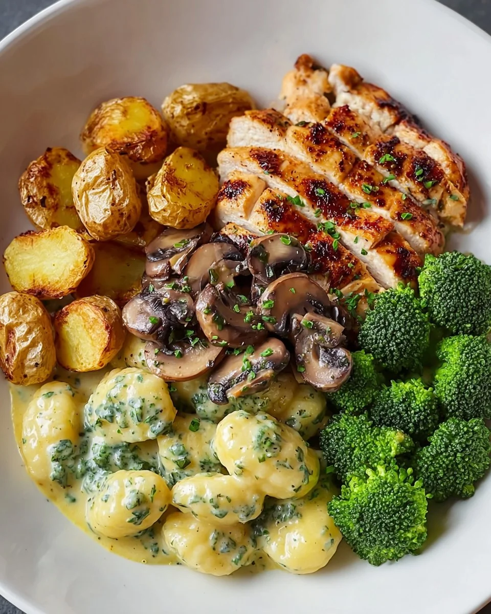 This comforting dish features juicy pan-seared chicken breast topped with a rich and creamy herb sauce, paired with golden roasted baby potatoes, sautéed mushrooms, and tender broccoli. It’s a balanced and flavorful meal that feels restaurant-quality yet is simple enough to prepare at home.