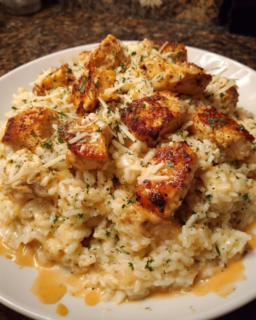 This Creamy Parmesan Garlic Rice with Seared Chicken Bites is a rich and comforting dish featuring tender, golden chicken paired with creamy, cheesy rice infused with garlic and Parmesan. It’s a cozy, satisfying meal perfect for any night of the week.