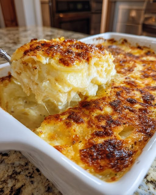 This creamy scalloped potato bake is rich, cheesy, and irresistibly comforting. Layers of tender potatoes are baked in a luscious cream sauce and topped with a golden, bubbly crust—perfect for holidays or cozy dinners.