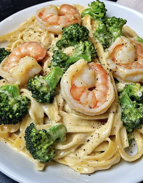 This Creamy Shrimp & Broccoli Alfredo Pasta is a rich and satisfying meal that’s perfect for any night of the week. Juicy shrimp, tender broccoli, and silky fettuccine are coated in a luscious homemade Alfredo sauce that’s full of flavor and comfort in every bite.