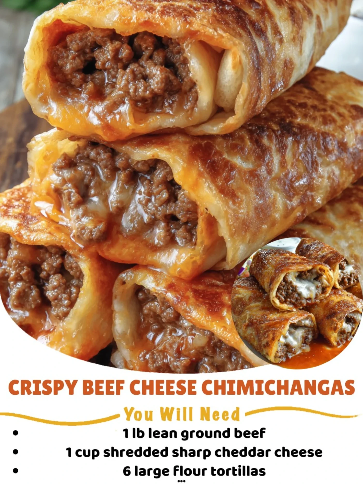 Crispy Beef Cheese Chimichangas are a mouthwatering Tex-Mex favorite with a golden, crunchy shell and a juicy, cheesy beef filling. These deep-fried (or air-fried) burrito-style wraps are perfect for dinner, party platters, or whenever you’re craving a flavorful, indulgent meal.