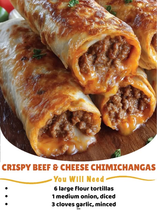 These Crispy Beef & Cheese Chimichangas are golden, crunchy, and absolutely packed with cheesy, savory flavor. Stuffed with a seasoned beef mixture and melty cheese, then baked or pan-fried to perfection, they make an irresistible family-friendly meal.