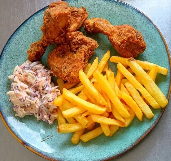 Crispy Chicken, Chips and Coleslaw is a classic combo that’s always a crowd-pleaser. Juicy fried chicken with a golden, crunchy coating, paired with hot, crispy fries and creamy coleslaw, makes for a comforting, satisfying meal whether it’s a weeknight dinner or weekend treat.