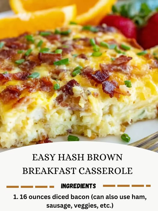 Start your morning right with this Easy Hash Brown Breakfast Casserole! Loaded with crispy bacon, melty cheese, and fluffy eggs over a bed of golden hash browns, it’s the ultimate crowd-pleaser for brunches, holidays, or lazy weekend mornings.