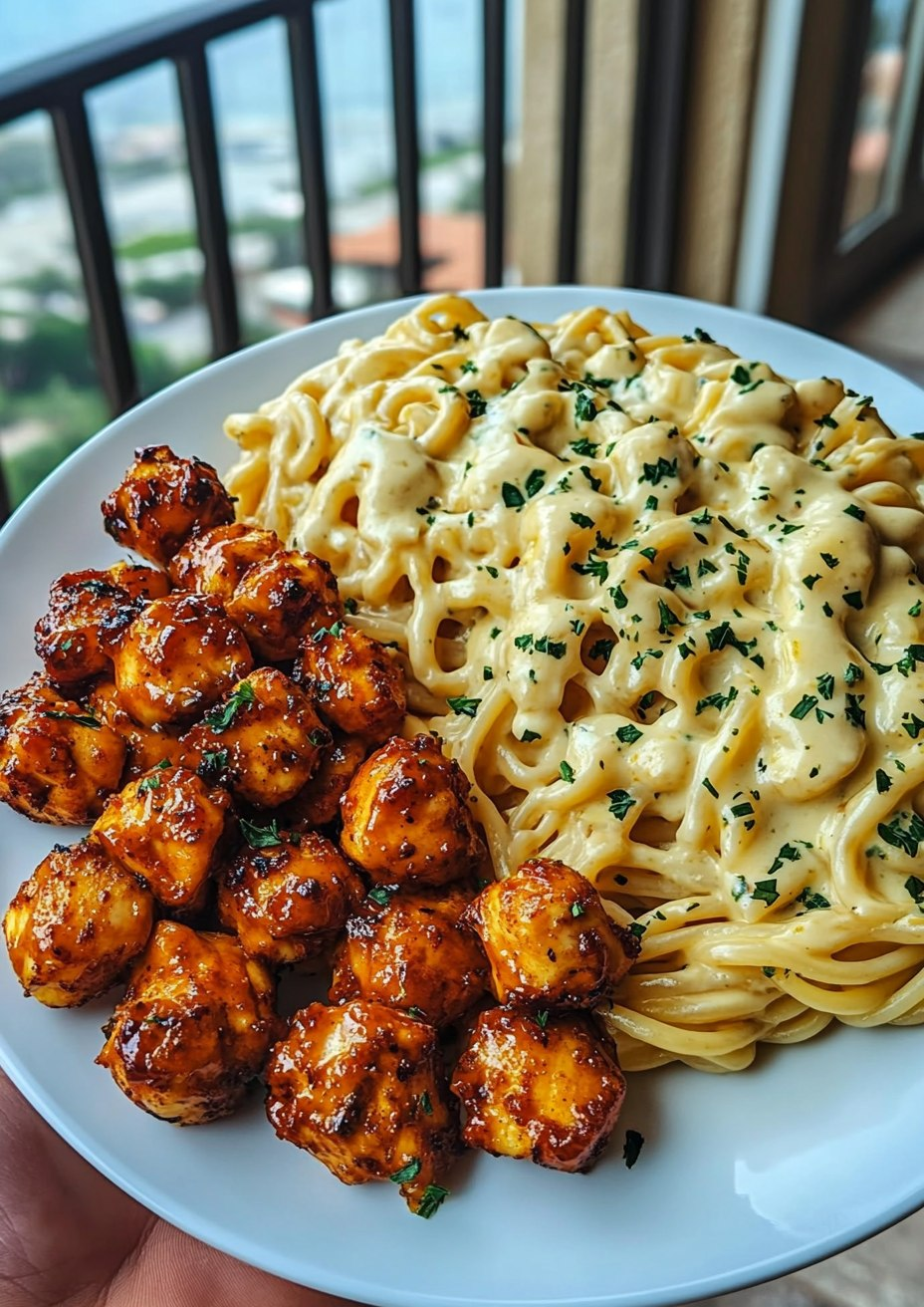 This creamy and bold Garlic Butter Chicken Bites & Spicy Cajun Alfredo Twisted Pasta is a match made in comfort food heaven. Buttery seared chicken bites coated in a garlicky glaze are paired with a fiery Cajun Alfredo sauce over perfectly twirled pasta.