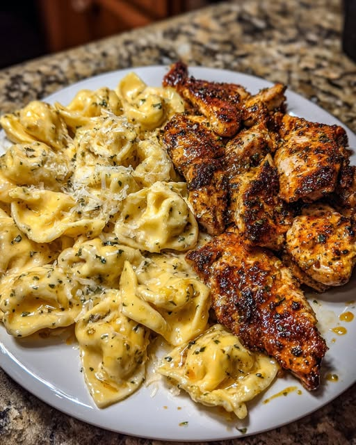 This rich and indulgent dish features juicy garlic butter chicken paired with tender cheese-filled tortellini, all coated in a creamy mozzarella Parmesan sauce. It’s a comforting, flavor-packed meal perfect for any pasta lover.