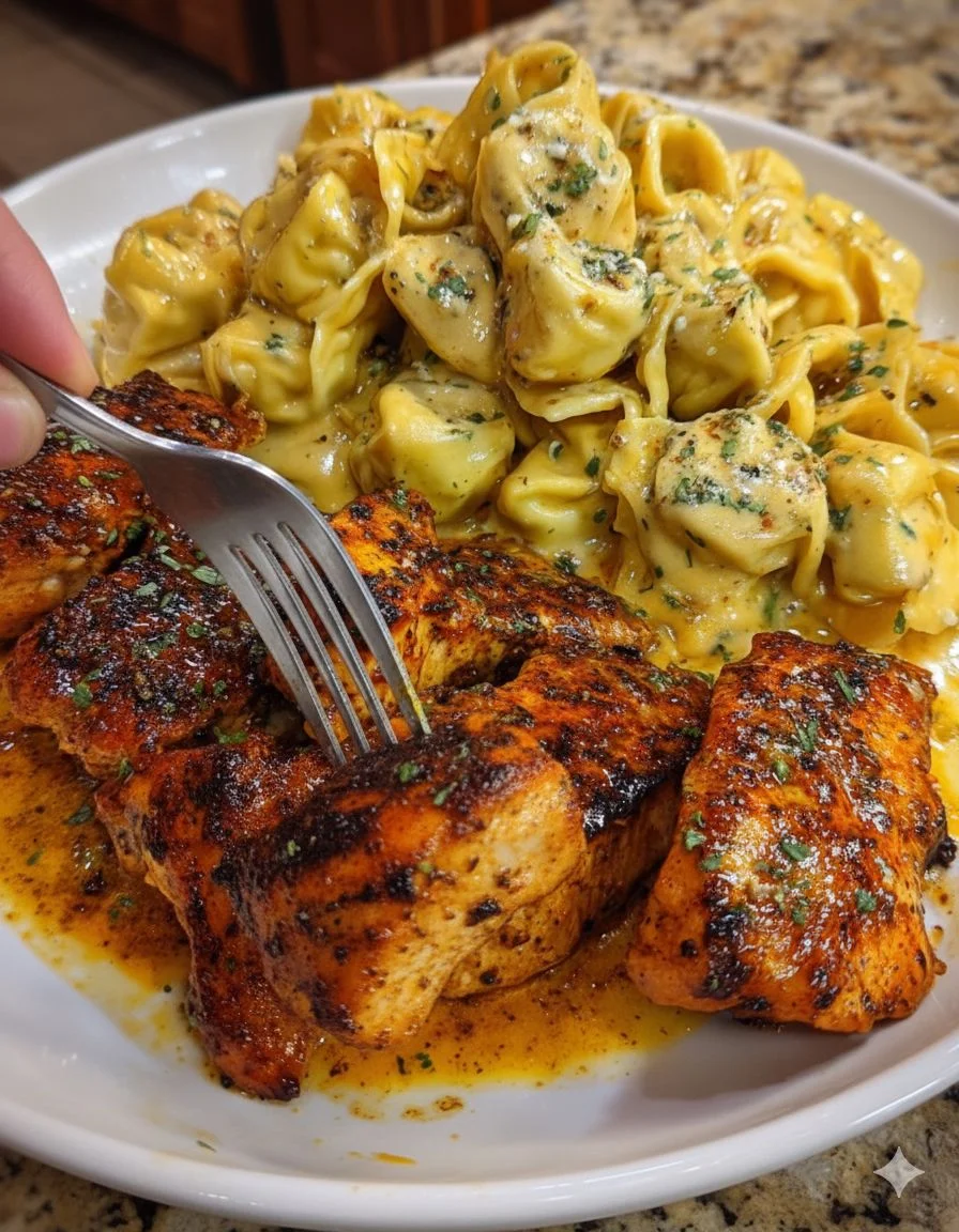 Garlic Butter Chicken Tortellini with Cajun Alfredo Sauce