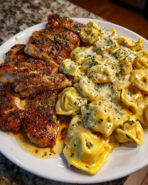 This indulgent dish features juicy garlic butter chicken paired with tender cheese tortellini coated in a rich and creamy Velveeta Alfredo sauce. It’s ultra-cheesy, flavorful, and perfect for a comforting, restaurant-style meal at home.
