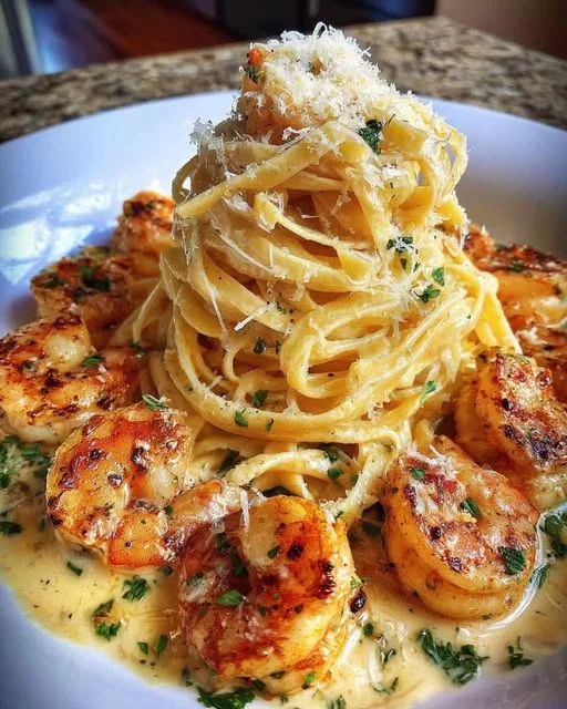 This Garlic Butter Shrimp with Creamy Garlic Parmesan Linguine is a rich and comforting pasta dish that combines tender, juicy shrimp with perfectly cooked linguine tossed in a velvety garlic parmesan cream sauce. The buttery shrimp add a savory depth of flavor, while the creamy pasta creates a satisfying restaurant-style meal that is perfect for weeknight dinners or special occasions.