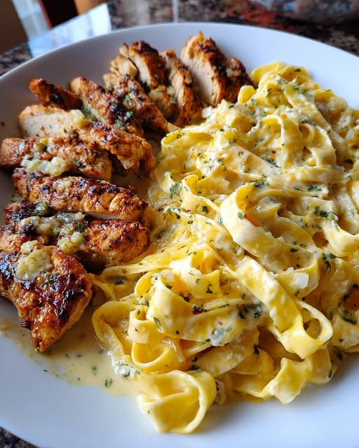 This Garlic Chicken with Creamy Alfredo Fettuccine is a rich and indulgent dish featuring perfectly seasoned, pan-seared chicken served alongside silky fettuccine coated in a creamy garlic Alfredo sauce. It’s a comforting, restaurant-style meal you can easily make at home.