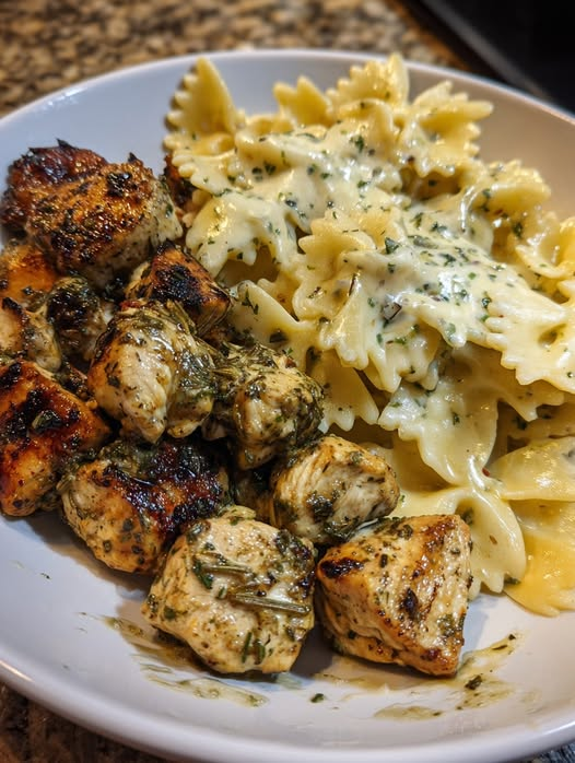 This garlic herb chicken bites with creamy bowtie pasta is a delicious and comforting dish featuring juicy, seasoned chicken paired with tender pasta coated in a rich, cheesy herb sauce. It’s perfect for a quick and satisfying meal.