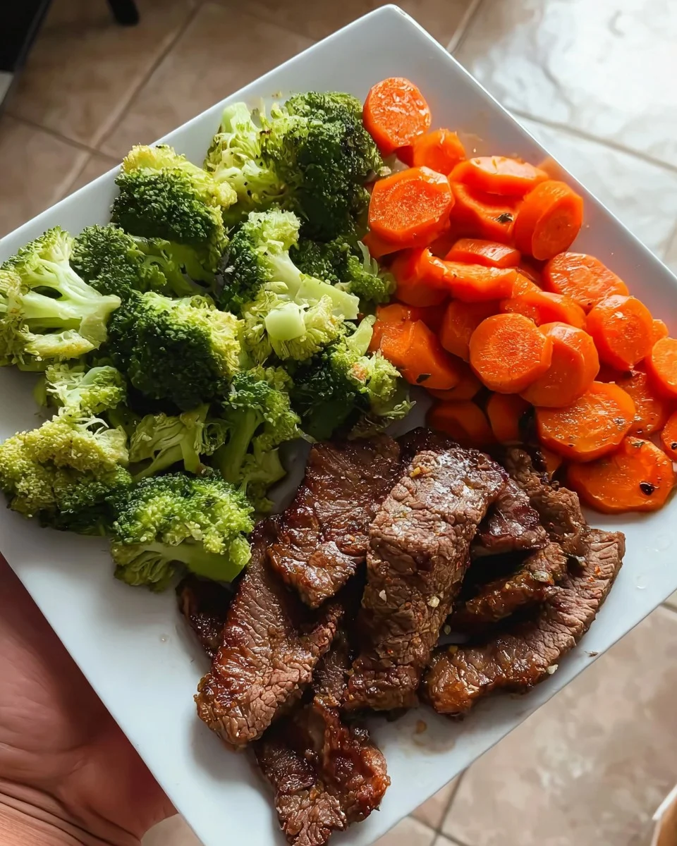 This Garlic Herb Steak with Steamed Broccoli & Carrots is a wholesome and flavorful meal. Tender steak strips are seasoned with garlic and herbs, then pan-seared to perfection. Paired with vibrant steamed broccoli and sweet carrots, this dish makes for a balanced and satisfying plate.