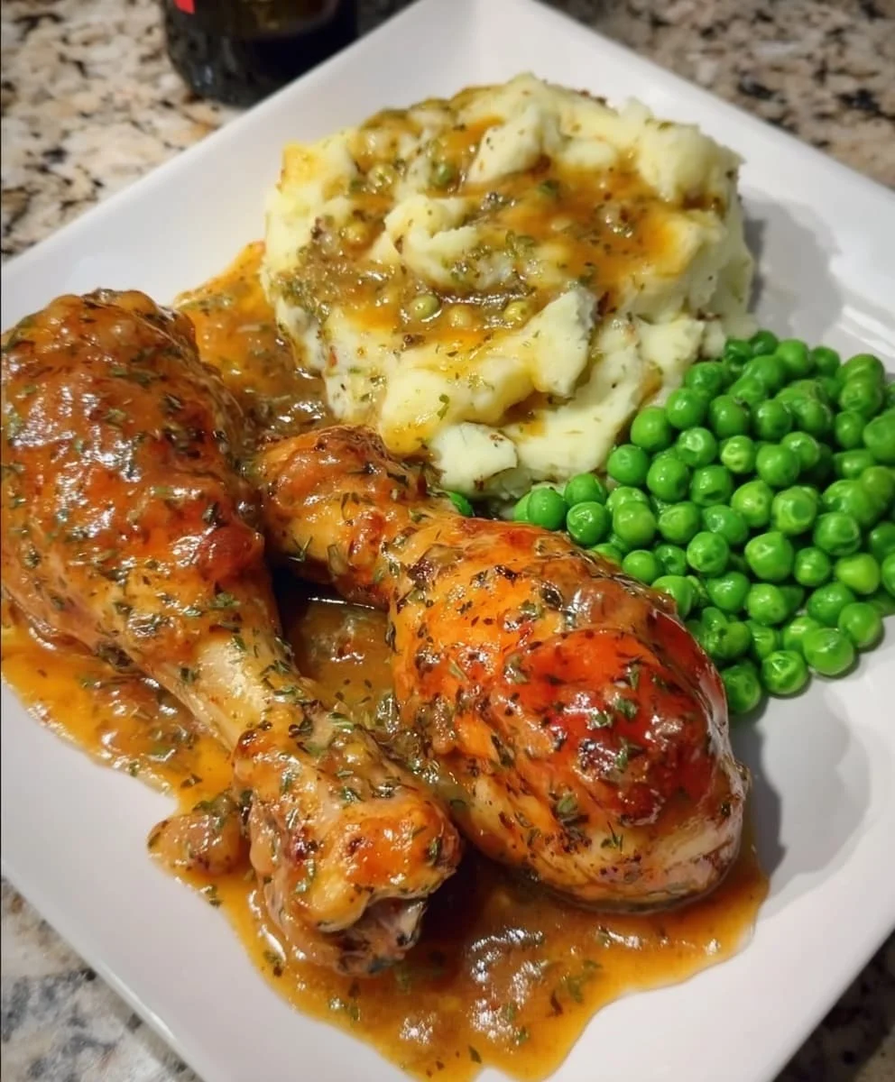 This Golden Gravy Chicken Drumsticks Dinner is a comforting, hearty meal that features tender baked chicken smothered in a rich, herby golden gravy. Served with buttery mashed potatoes and sweet green peas, it’s the perfect homestyle dinner for any day of the week.