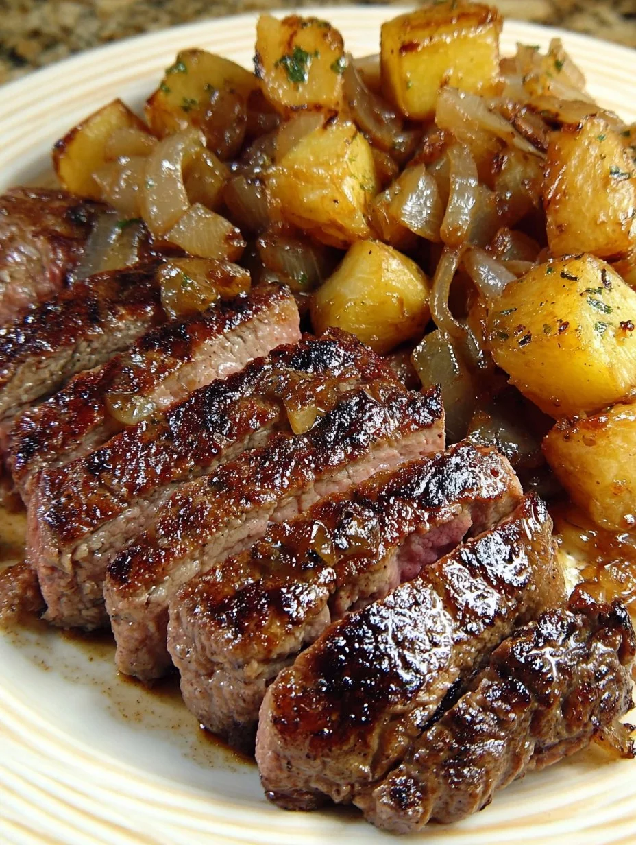Treat yourself to a hearty and flavorful meal with this Grilled Steak with Caramelized Onions and Roasted Potatoes. Juicy, perfectly seared steak is paired with sweet, golden onions and crispy, herb-roasted potatoes—a satisfying dinner that’s simple yet impressive.