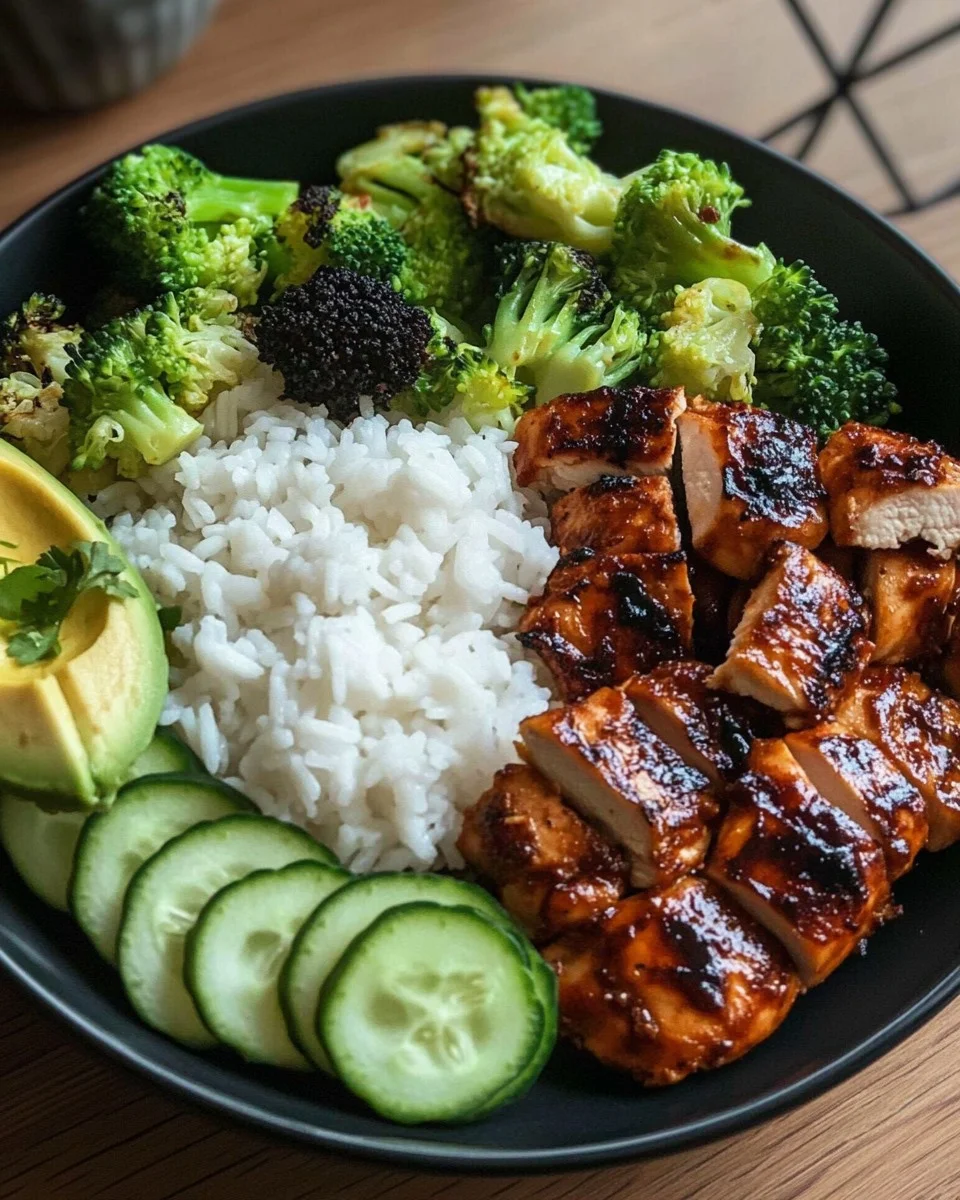This Grilled Teriyaki Chicken Rice Bowl with Roasted Broccoli, Avocado & Cucumber is a vibrant, protein-rich meal loaded with texture and flavor. Juicy teriyaki-glazed chicken, fluffy white rice, crisp cucumber slices, creamy avocado, and roasted broccoli come together for a wholesome bowl that’s as satisfying as it is delicious.