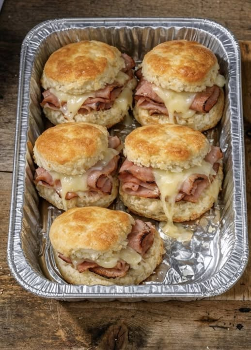 These warm and buttery ham and cheese biscuit sliders are the perfect quick meal or party snack. Fluffy biscuits are filled with savory ham and melted cheese, then baked until golden and gooey.